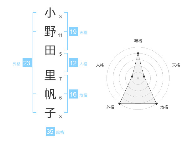 小野田 里帆子さんを姓名の画数から五運を鑑定