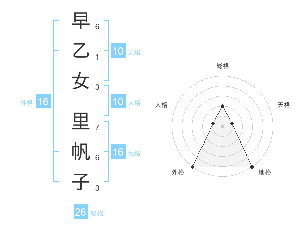 早乙女 里帆子さんを姓名の画数から五運を鑑定