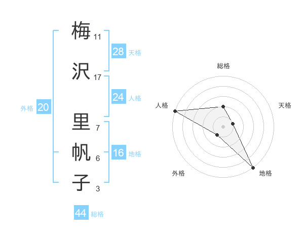 梅沢 里帆子さんを姓名の画数から五運を鑑定