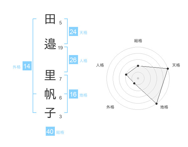 田邉 里帆子さんを姓名の画数から五運を鑑定
