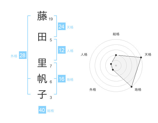 藤田 里帆子さんを姓名の画数から五運を鑑定