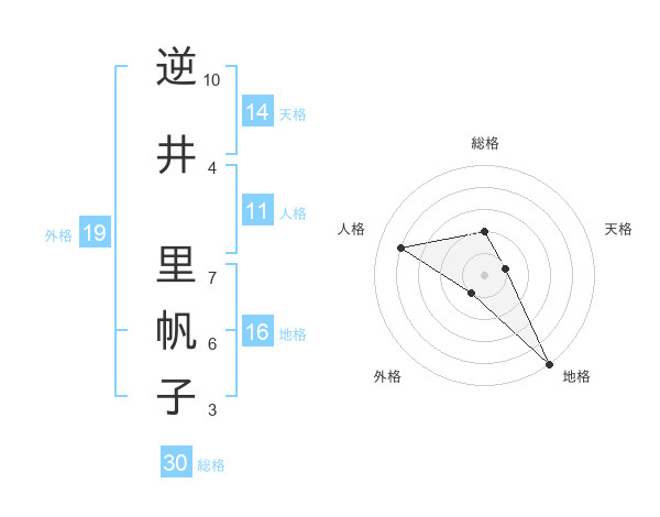 逆井 里帆子さんを姓名の画数から五運を鑑定