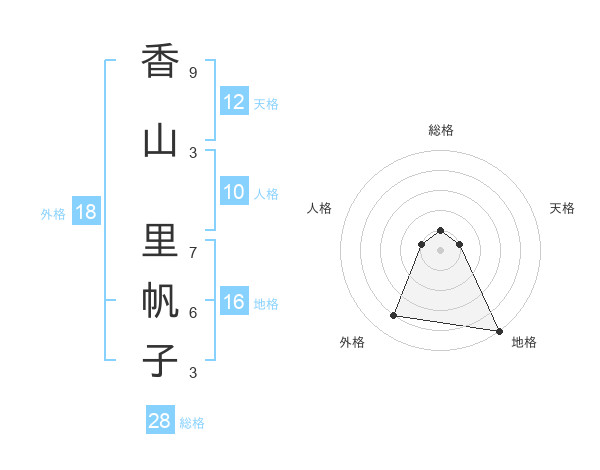 香山 里帆子さんを姓名の画数から五運を鑑定
