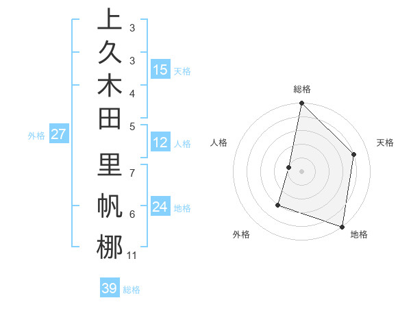 上久木田 里帆梛さんを姓名の画数から五運を鑑定