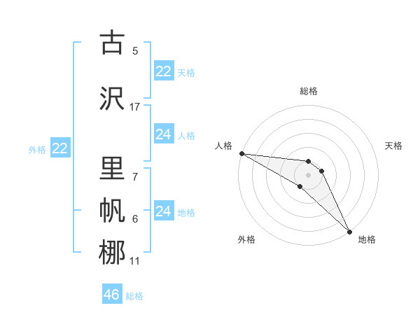 古沢 里帆梛さんの外格は22画の1点!
