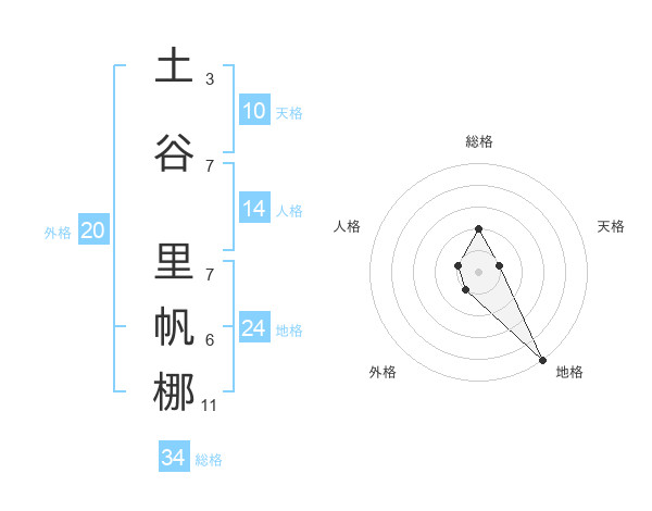 土谷 里帆梛さんの総格は34画の2点!