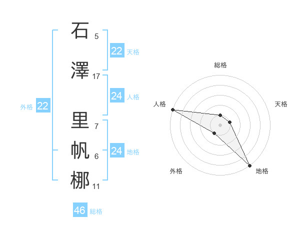 石澤 里帆梛さんを姓名の画数から五運を鑑定