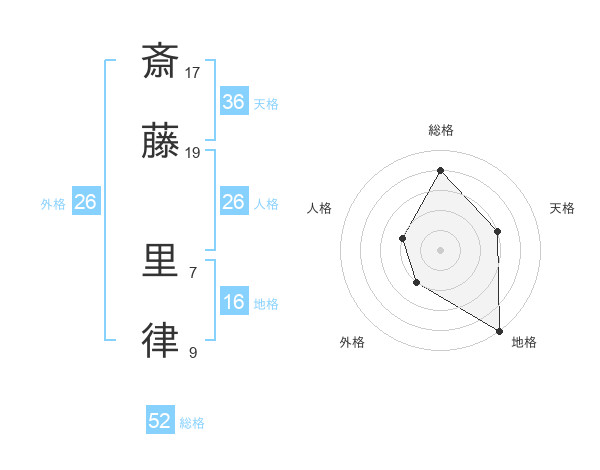 斎藤 里律さんを姓名の画数から五運を鑑定
