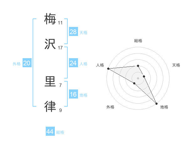 梅沢 里律さんを姓名の画数から五運を鑑定