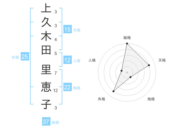 上久木田 里恵子さんを姓名の画数から五運を鑑定