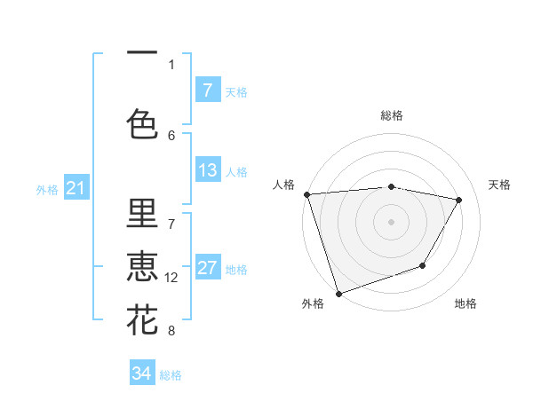 一色 里恵花さんの外格は21画の5点!