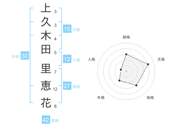 上久木田 里恵花さんの天格は15画の4点!