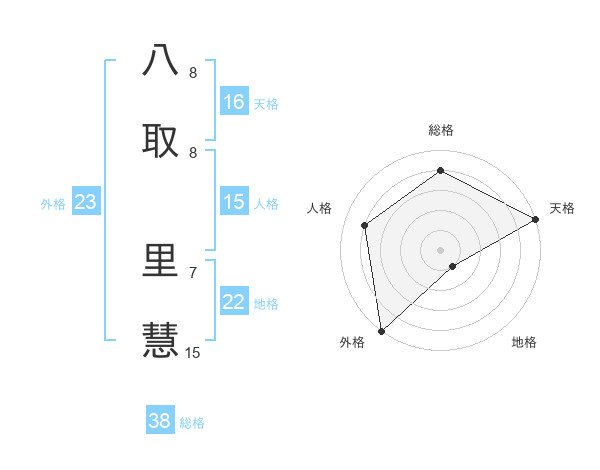 八取 里慧さんの外格は23画の5点!