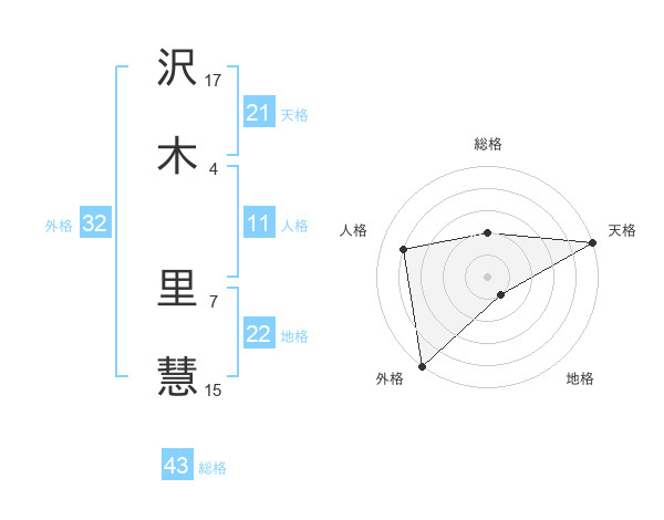 沢木 里慧さんを姓名の画数から五運を鑑定