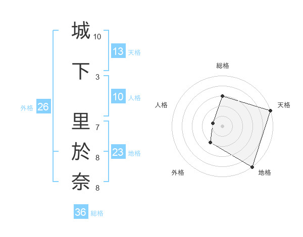 城下 里於奈さんを姓名の画数から五運を鑑定