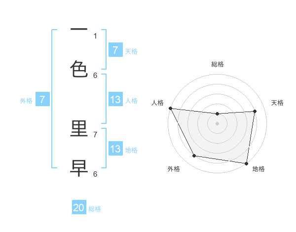 一色 里早さんの地格は13画の5点!
