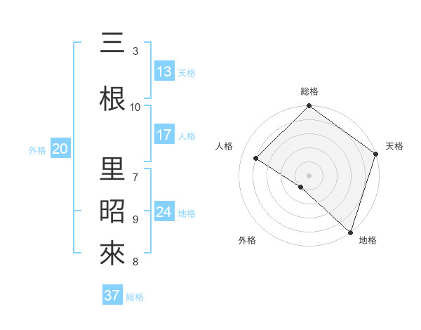 三根 里昭來さんを姓名の画数から五運を鑑定