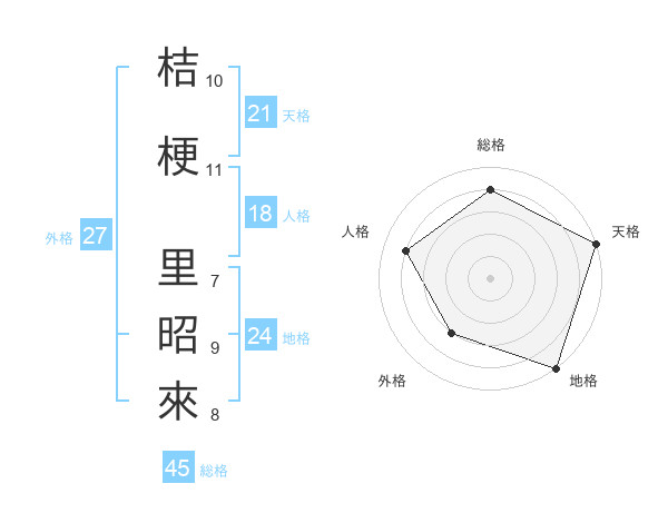 桔梗 里昭來さんを姓名の画数から五運を鑑定
