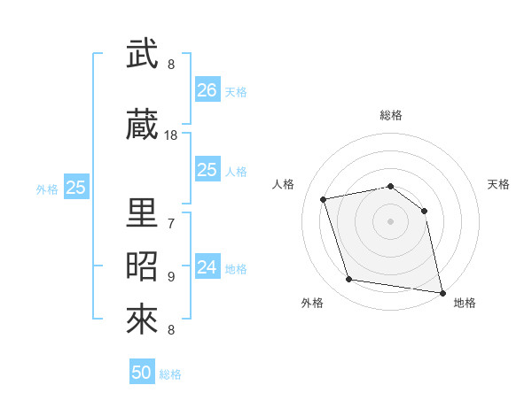 武蔵 里昭來さんを姓名の画数から五運を鑑定