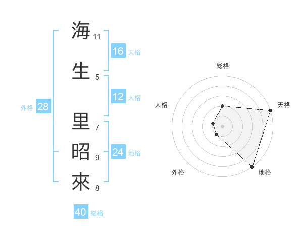 海生 里昭來さんの総格は40画の2点!