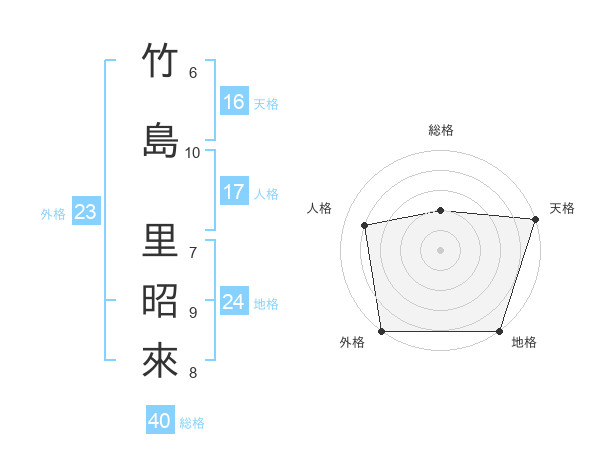 竹島 里昭來さんの外格は23画の5点!
