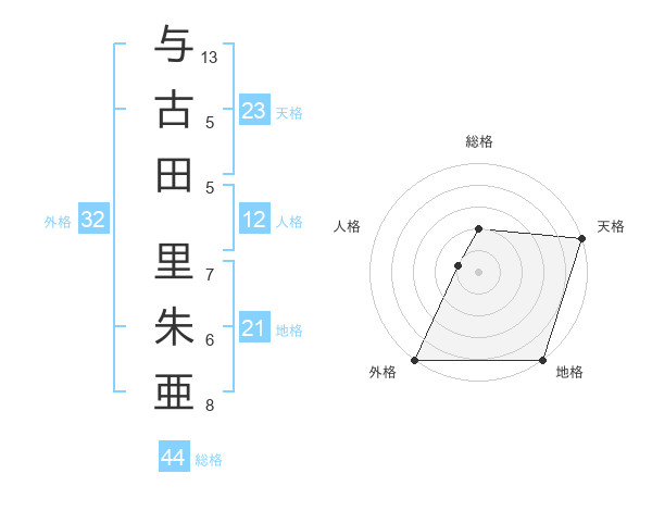 与古田 里朱亜さんの天格は23画の5点!