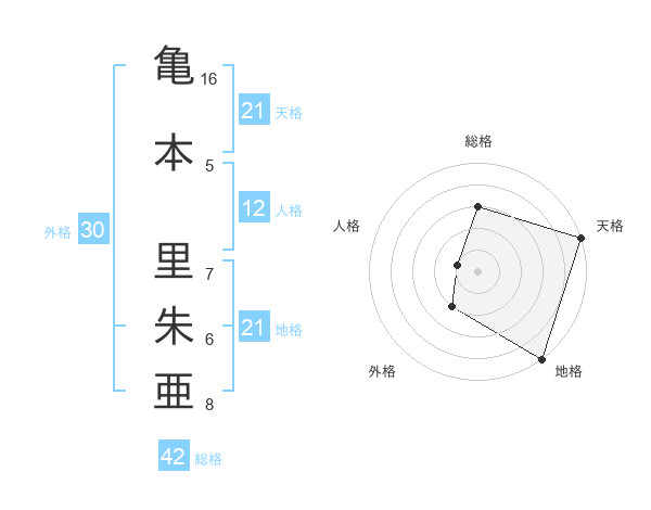 亀本 里朱亜さんを姓名の画数から五運を鑑定