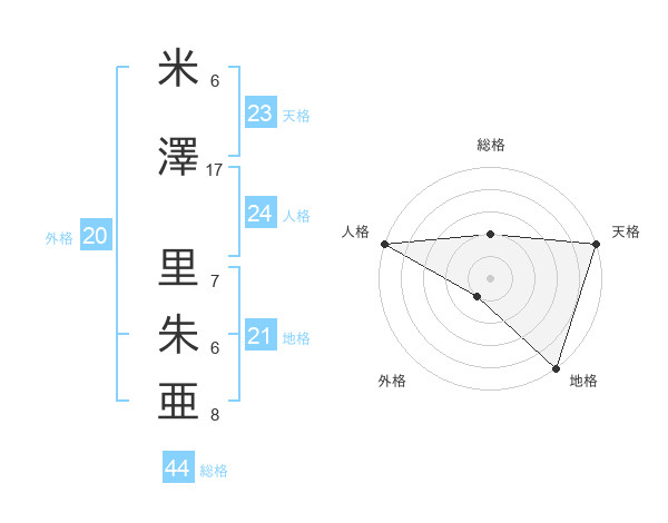 米澤 里朱亜さんを姓名の画数から五運を鑑定