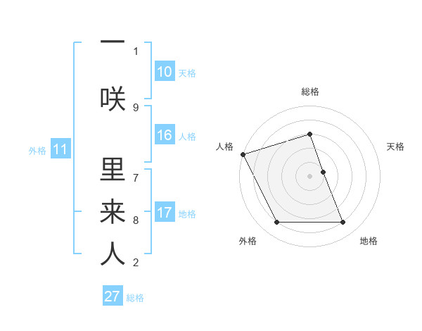 一咲 里来人さんの総格は27画の3点!