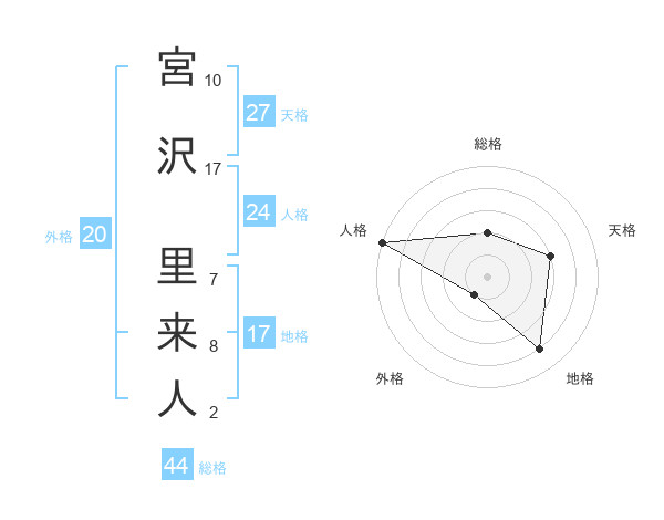 宮沢 里来人さんを姓名の画数から五運を鑑定