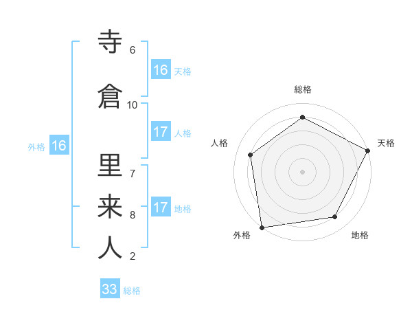 寺倉 里来人さんの天格は16画の5点!