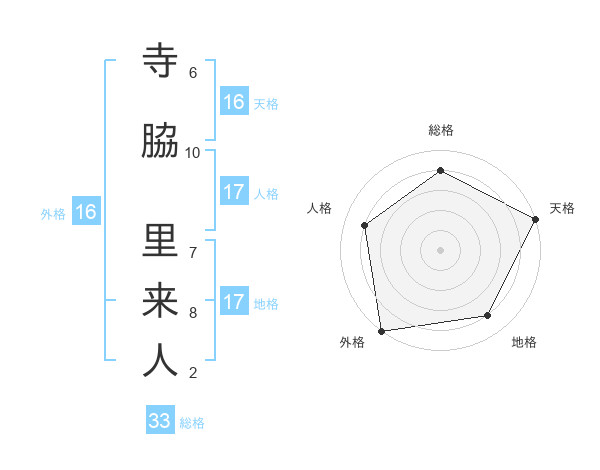 寺脇 里来人さんの天格は16画の5点!