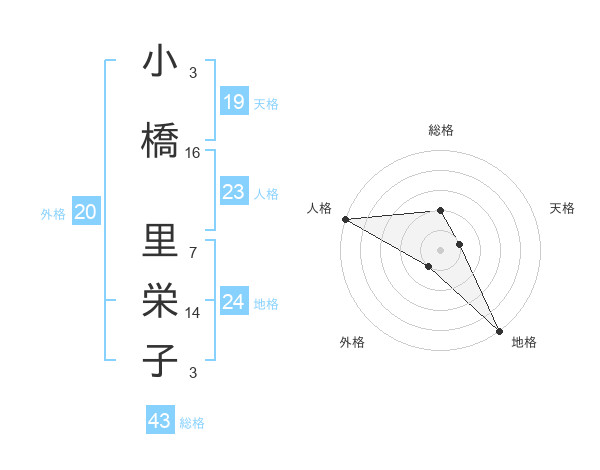 小橋 里栄子さんを姓名の画数から五運を鑑定