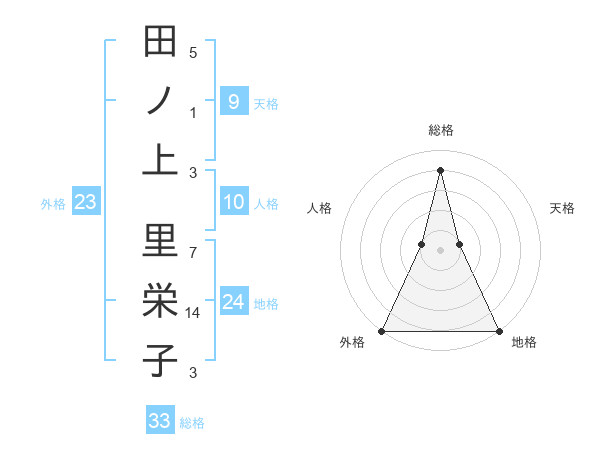 田ノ上 里栄子さんを姓名の画数から五運を鑑定