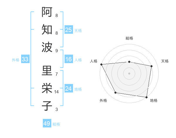 阿知波 里栄子さんの天格は25画の4点!