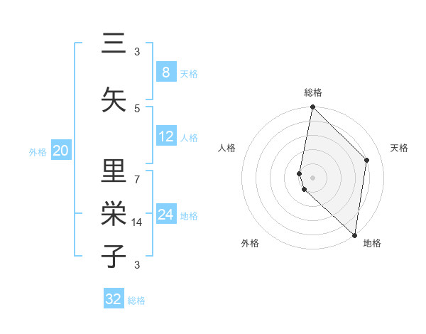 三矢 里栄子さんを姓名の画数から五運を鑑定