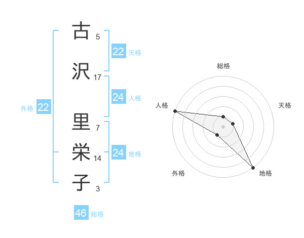 古沢 里栄子さんを姓名の画数から五運を鑑定