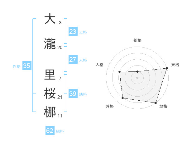 大瀧 里桜梛さんを姓名の画数から五運を鑑定