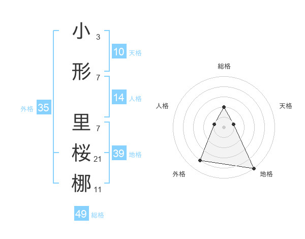 小形 里桜梛さんの総格は49画の2点!