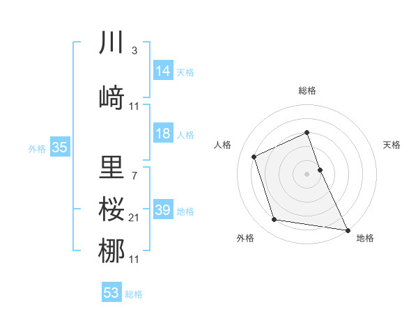 川﨑 里桜梛さんを姓名の画数から五運を鑑定