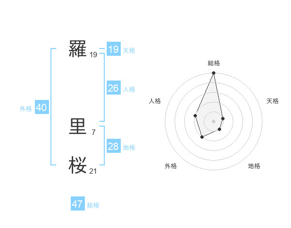 羅 里桜さんの総格は47画の5点!