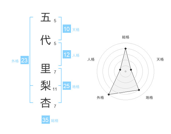五代 里梨杏さんを姓名の画数から五運を鑑定