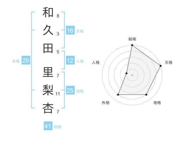 和久田 里梨杏さんを姓名の画数から五運を鑑定