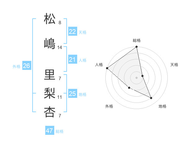 松嶋 里梨杏さんの総格は47画の5点!