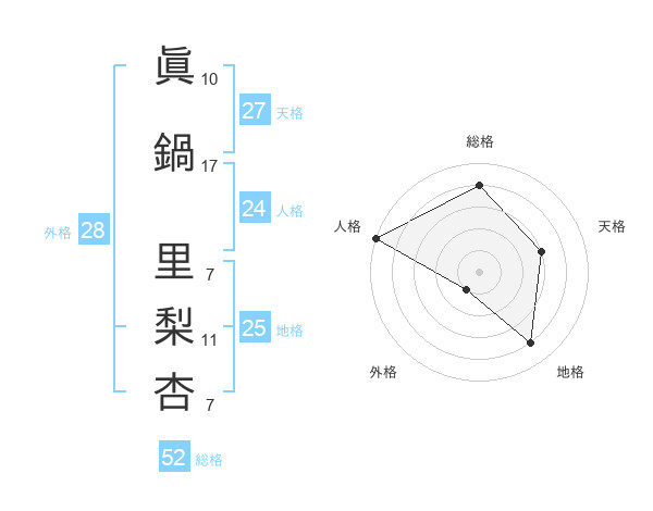 眞鍋 里梨杏さんを姓名の画数から五運を鑑定