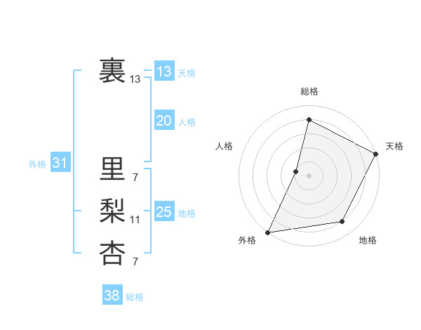 裏 里梨杏さんの総格は38画の4点!