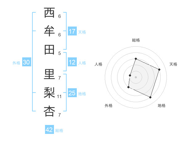 西牟田 里梨杏さんを姓名の画数から五運を鑑定