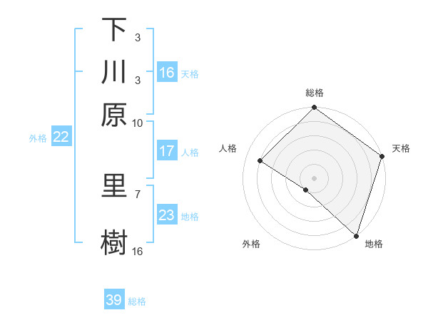 下川原 里樹さんを姓名の画数から五運を鑑定