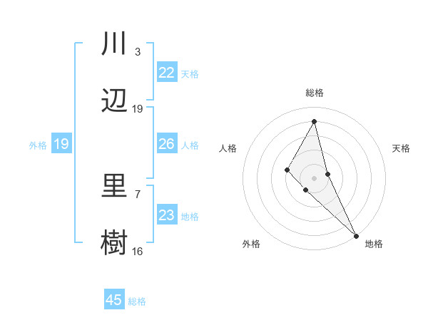 川辺 里樹さんを姓名の画数から五運を鑑定