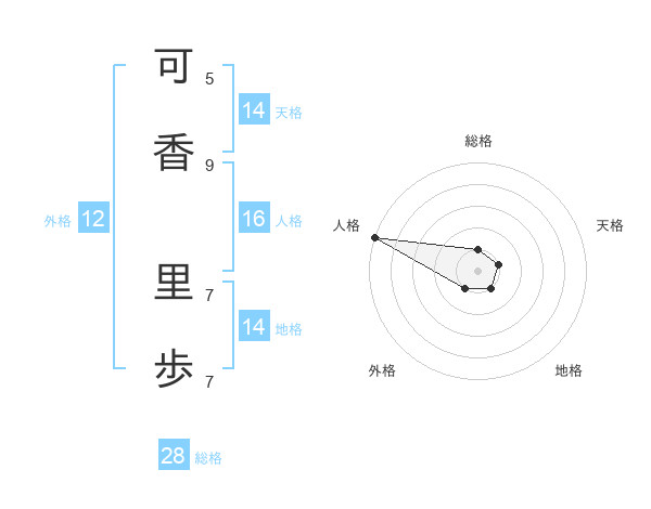 可香 里歩さんの総格は28画の1点!